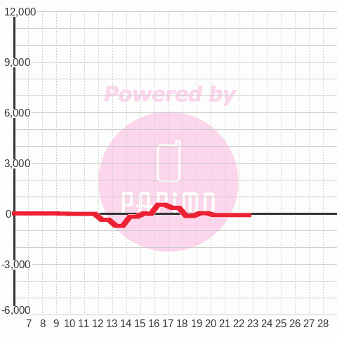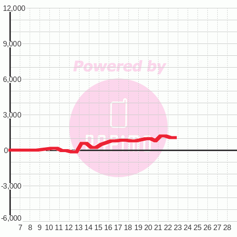 | 総スタート 6,956 | 最終スタート 4 | 最大出メダル 2,993 |
