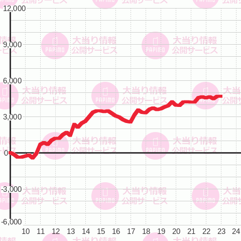 | 総スタート 8,536 | 最終スタート 104 | 最大出メダル 5,254 |