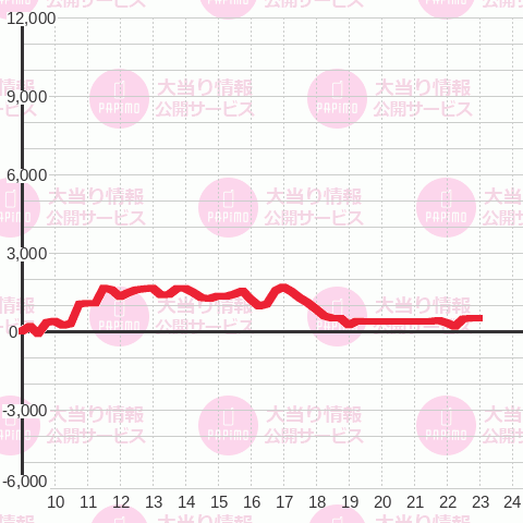 | 総スタート 5,766 | 最終スタート 6 | 最大出メダル 3,930 |
