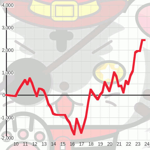 | 総スタート 6,743 | 最終スタート 32 | 最大出メダル 4,107 |