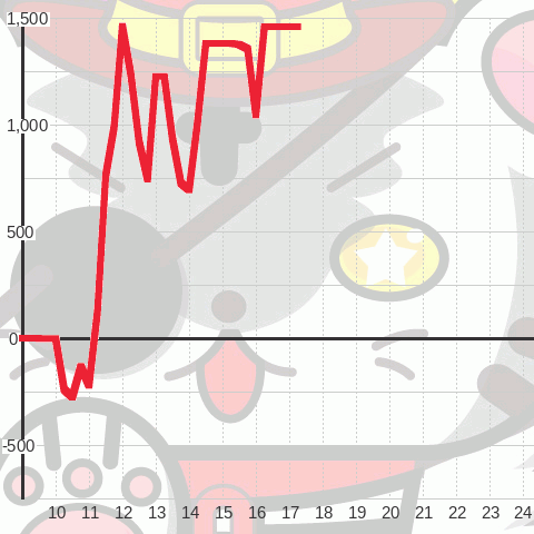 | 総スタート 2,845 | 最終スタート 15 | 最大出メダル 14,638 |