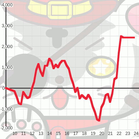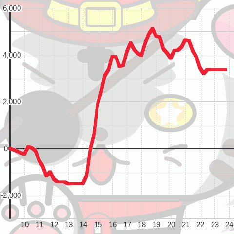 | 総スタート 4,456 | 最終スタート 3 | 最大出メダル 6,593 |