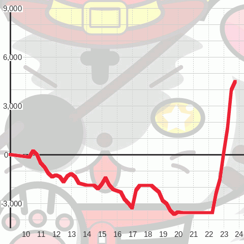 | 総スタート 6,335 | 最終スタート 2 | 最大出メダル 7,988 |