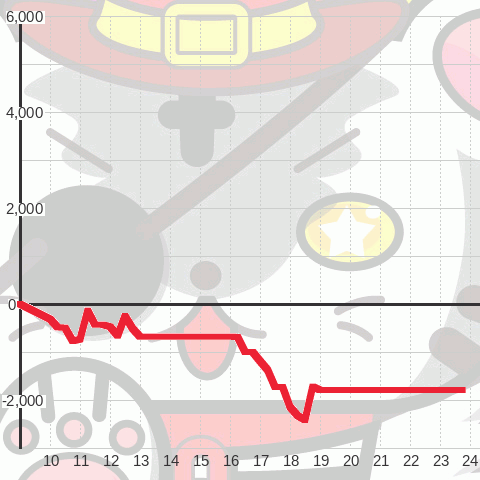 | 総スタート 6,343 | 最終スタート 182 | 最大出メダル 5,282 |